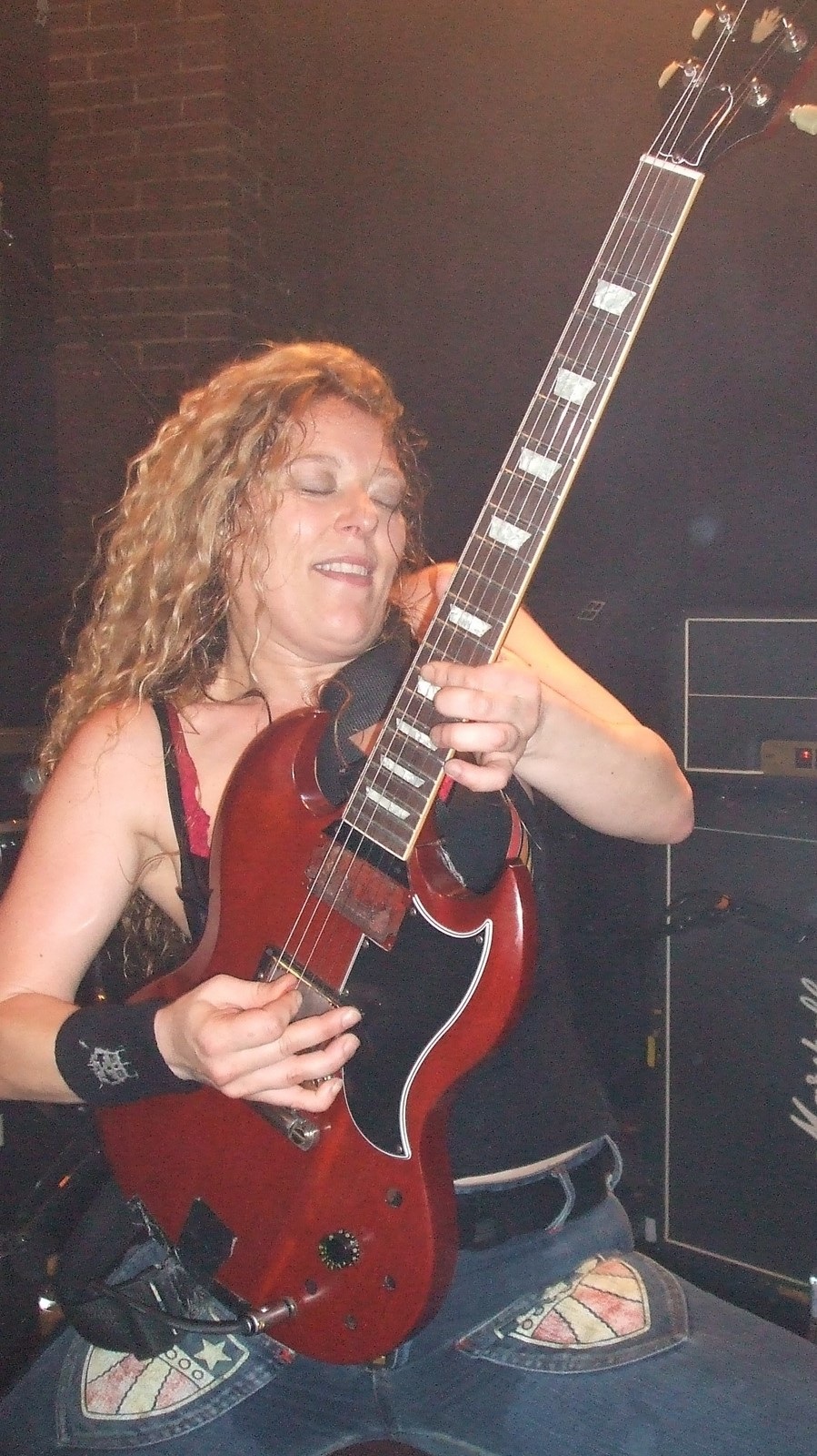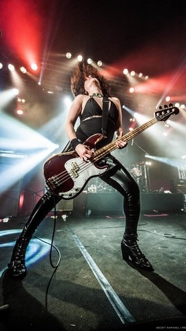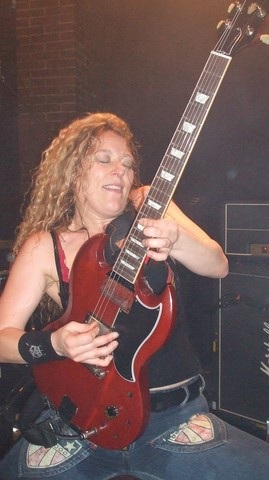 Véritable furie sur scène, ses attributs généreux couplés d'un jeu de guitare de haut vol laisse l'audience k.o à chaque round.