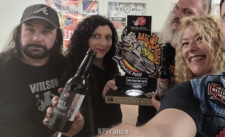 Nashville Pussy Milk Stout Hate and Whiskey!!! On en a écumé quelques soirées d'avant/ d'après concerts, et l'idée de créer une bière plébiscitée par le groupe et qui ressemble à l'esprit du groupe est arrivée. . L'association Crus d'enfer et la brasserie artisanale Mad'Occ propose cette bière brune Stout ( type irlandaise bien connue), mais avec un savoir faire et une complexité inédite. Milk Sout sous-entend un emploi de lactose pour une mousse onctueuse, mais nous ne nous arrêtons pas là. Une simple bière ne serait symboliser l'histoire de ce groupe sans une touche de Bourbon.. Cette bière est élaborée au contact de bois de chêne gorgé de Bourbon Américain cher à nos musiciens d'Atlanta.... Grand Merci à Hamilton pour les visuels et création de l'étiquette "Hate & Whiskey"!