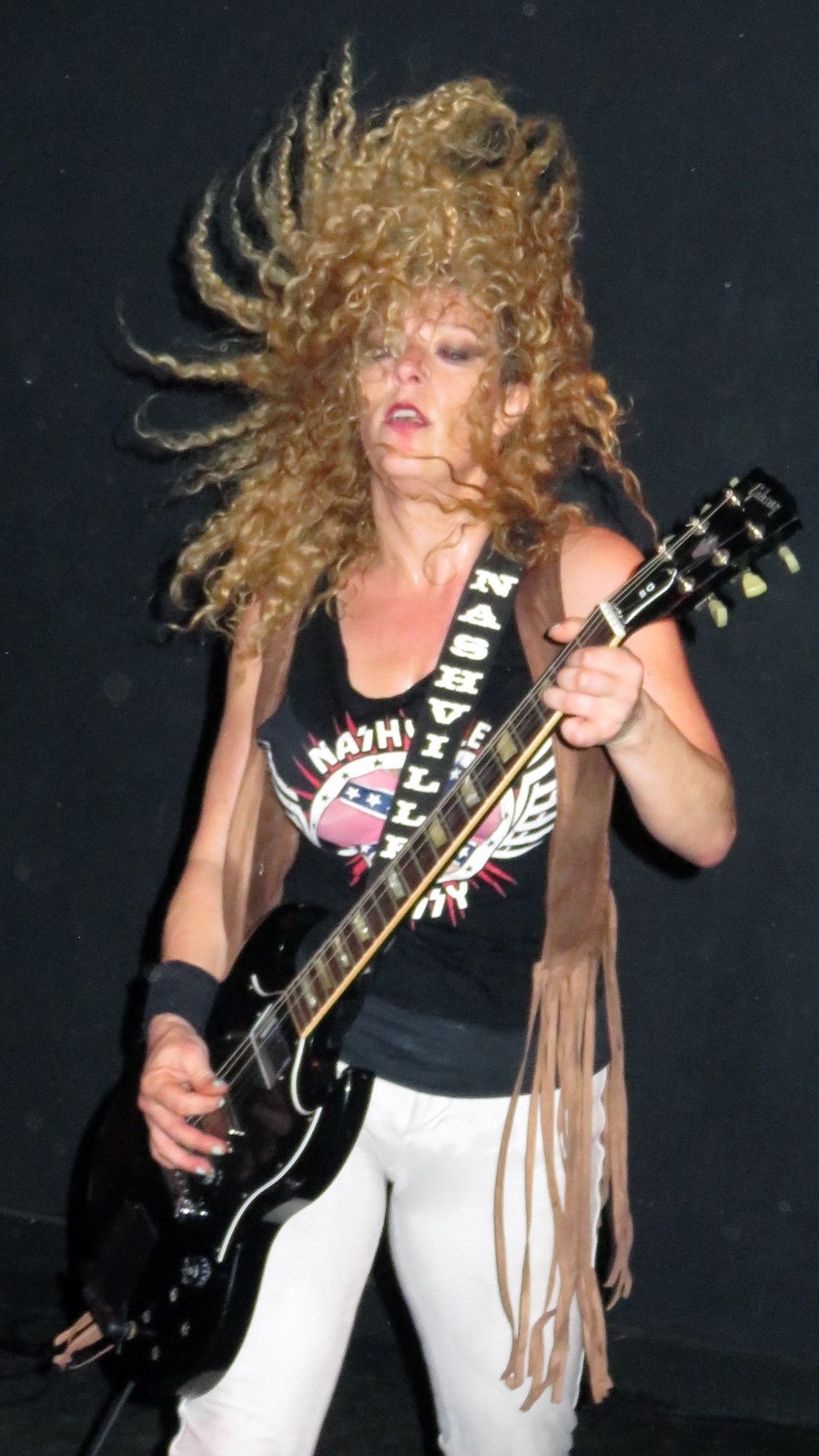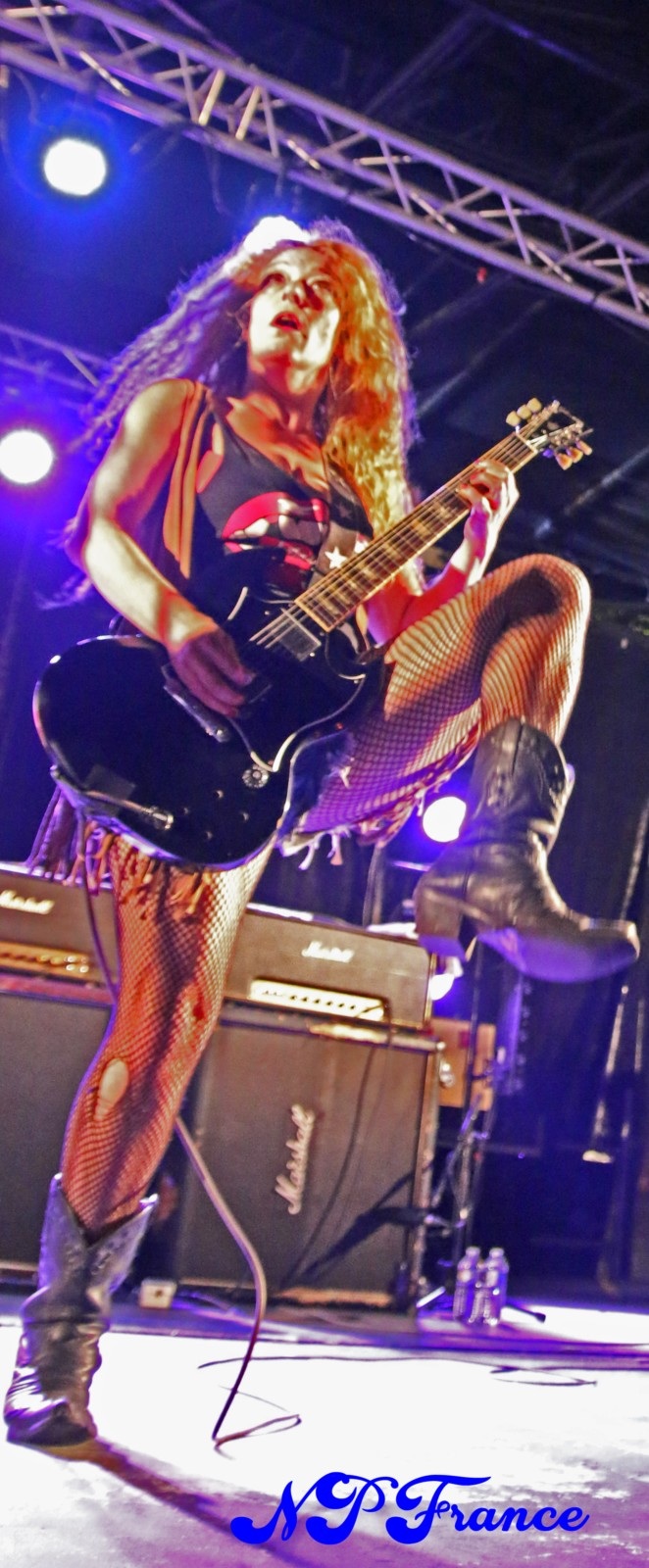 Véritable furie sur scène, ses attributs généreux couplés d'un jeu de guitare de haut vol laisse l'audience k.o à chaque round.